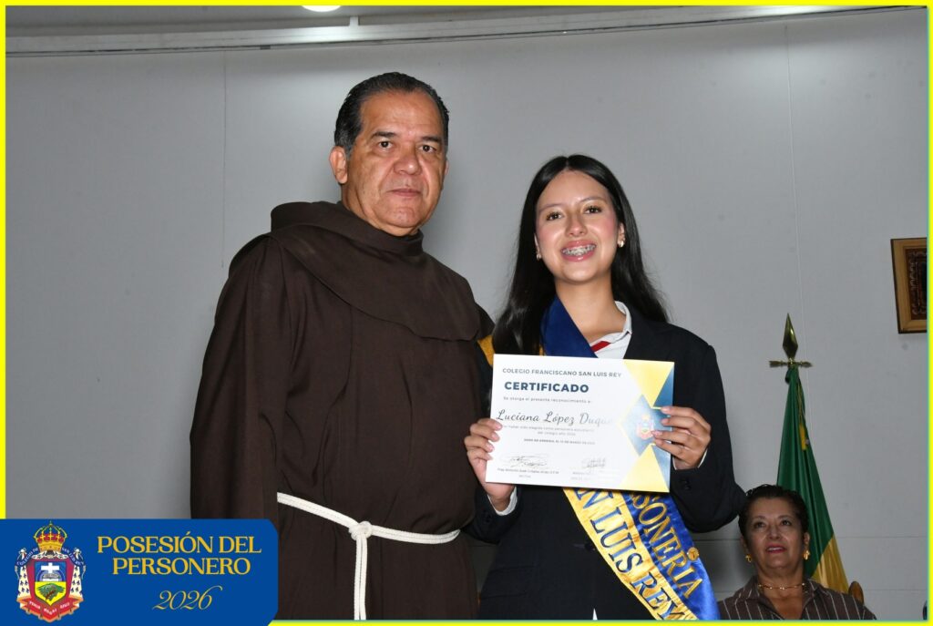 El martes 10 de marzo de 2026, el Colegio Franciscano San Luis Rey llevó a cabo la ceremonia de Posesión de los Personeros Estudiantiles, un acto solemne organizado por el área de Ciencias Sociales, bajo la dirección del docente Andrés Felipe Correa para exaltar la democracia escolar y rendir homenaje a los símbolos patrios.