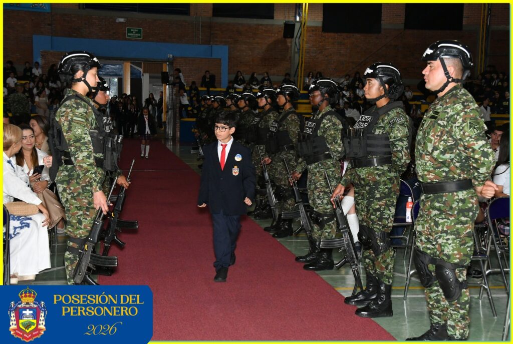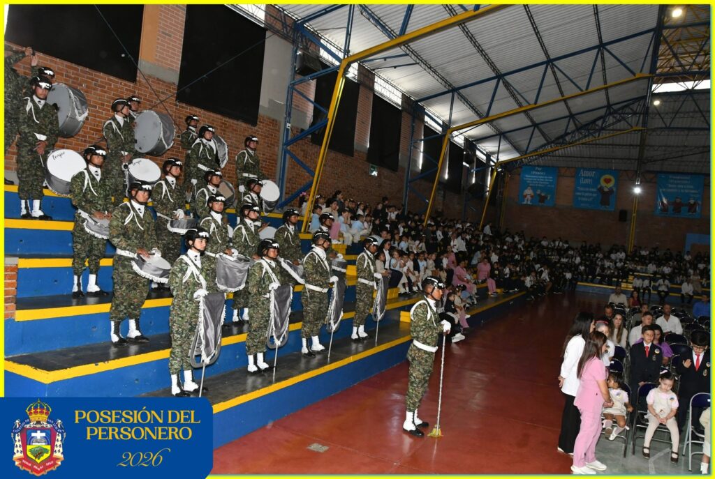 El evento reunió a los frailes franciscanos, directivos, coordinadores, estudiantes, padres de familia y personal del Batallón de la Octava Brigada, quienes participaron en el protocolario ingreso de los representantes del Consejo Estudiantil y de los personeros 2026.